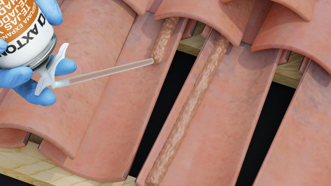 • Especiales para tejas. Su adherencia es más potente y su expansión es más baja después de aplicarlas. Con un simple cordón o punto de espuma se fija una teja o una serie de tejas a la superficie. Al expandir menos, no altera la inclinación ni la separación mínima que requiere la teja sobre el soporte y esto ayuda a que no se rompan las tejas. También se usan para aislar fachadas.