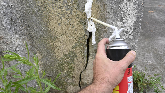 Llega el momento de trabajar con la espuma. Agita bien el bote durante un tiempo considerable para que se mezclen bien todos los componentes y para que conserve las propiedades hasta el final del bote. Para aplicar la espuma hazlo con el bote boca abajo y desde abajo hacia arriba en el caso de una fisura o rellenar un hueco. Espera entre 30 y 50 minutos (comprueba las indicaciones específicas del fabricante) a que se seque al tacto. Si quieres que merme un poco en algún sitio específico, puedes presionar la espuma sobrante con un trapo empapado en acetona.